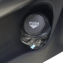 Lovely design. Replaces loose paper, wrappers etc with a sleek trap door trash bin so little messes just do not get started. Didn't know how much I need it before I started. Mine fit in the front or rear door just fine.
